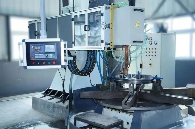 ?。?)單工位雙淬火變壓器感應(yīng)器組立式回轉(zhuǎn)支承,該回轉(zhuǎn)支承它采用一個立式升降機構(gòu),兩套淬火變壓器感應(yīng)器組.一套用以淬凸輪,另一套用以淬軸頸。兩套感應(yīng)器均是雙孔的,如網(wǎng)兩套淬火變壓器感應(yīng)器組是相互呈90。交叉,共對著回轉(zhuǎn)支承淬火機床感應(yīng)設(shè)備的雙中心線。為此.一套感應(yīng)器的兩個孔是左右配置,而另一套感應(yīng)器的二個孔呈前后分布以上兩種回轉(zhuǎn)支承淬火機床感應(yīng)設(shè)備適用于不是大批量生產(chǎn)的,因為它是采用按順序分段一次淬火方式,但對中頻電源來說,由于采用兩個工位交替加熱,其暫載率是較高的。